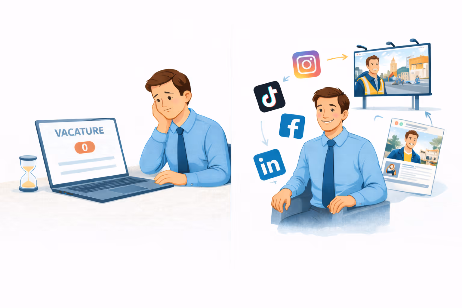 Ondertussen zitten jouw toekomstige medewerkers elke dag uren op social media zoals Instagram, TikTok en YouTube. Daar begint online werving al, nog vóór iemand actief een nieuwe baan zoekt.